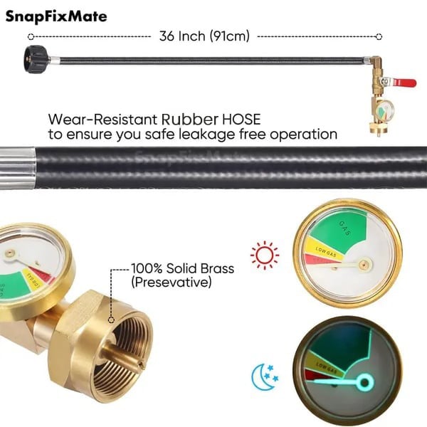【New Updated Model】With the pressure gauge,you can refill according to your needs.Rotatable luminous dial-no matter day or night, it can clearly detect the amount of gas in the propane tank, no need to shake the propane tank.